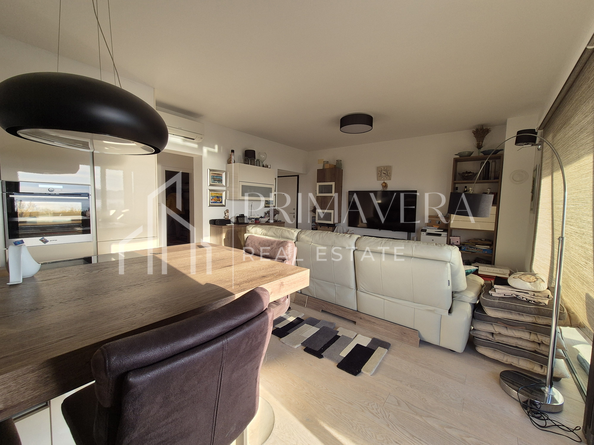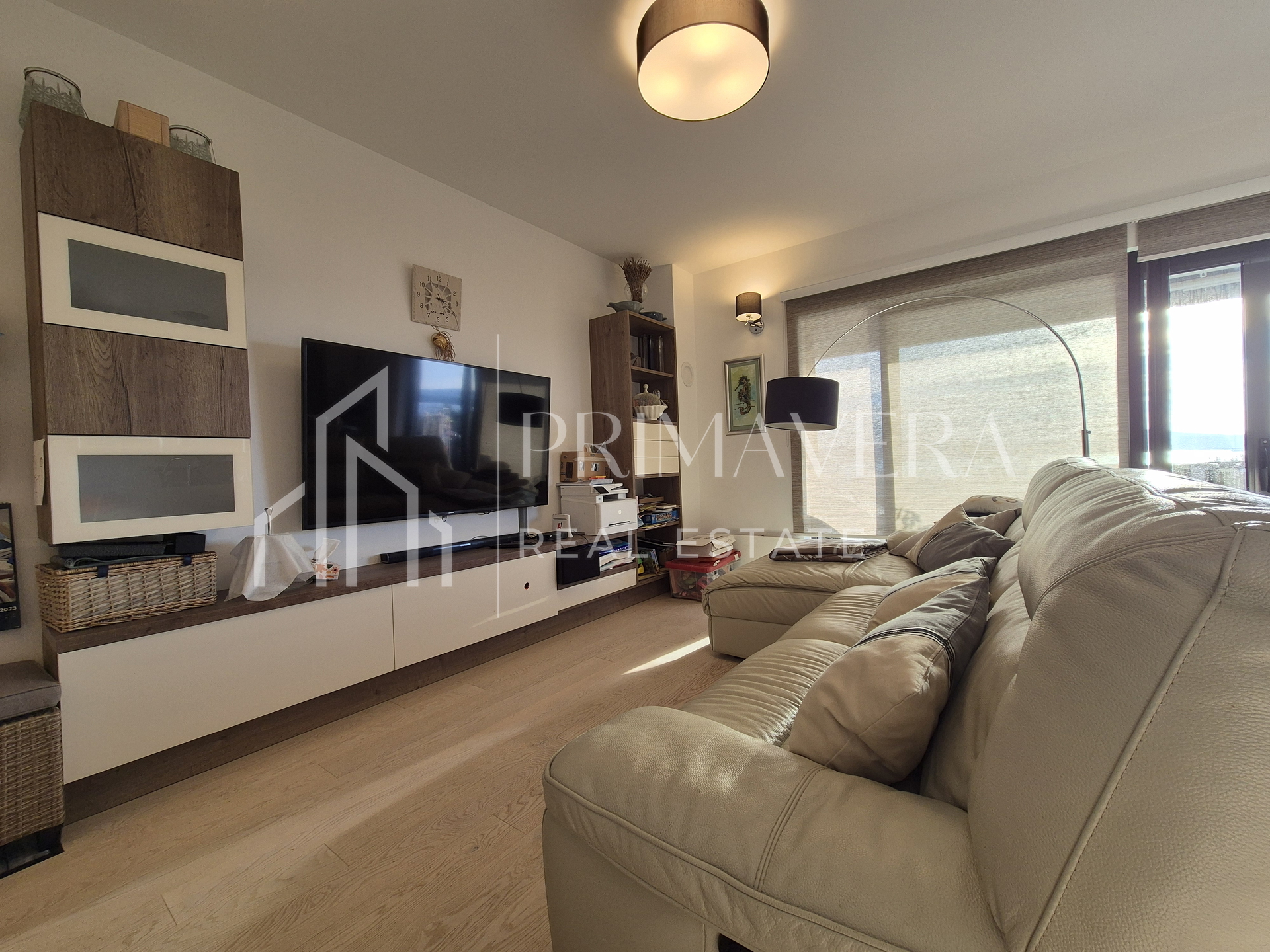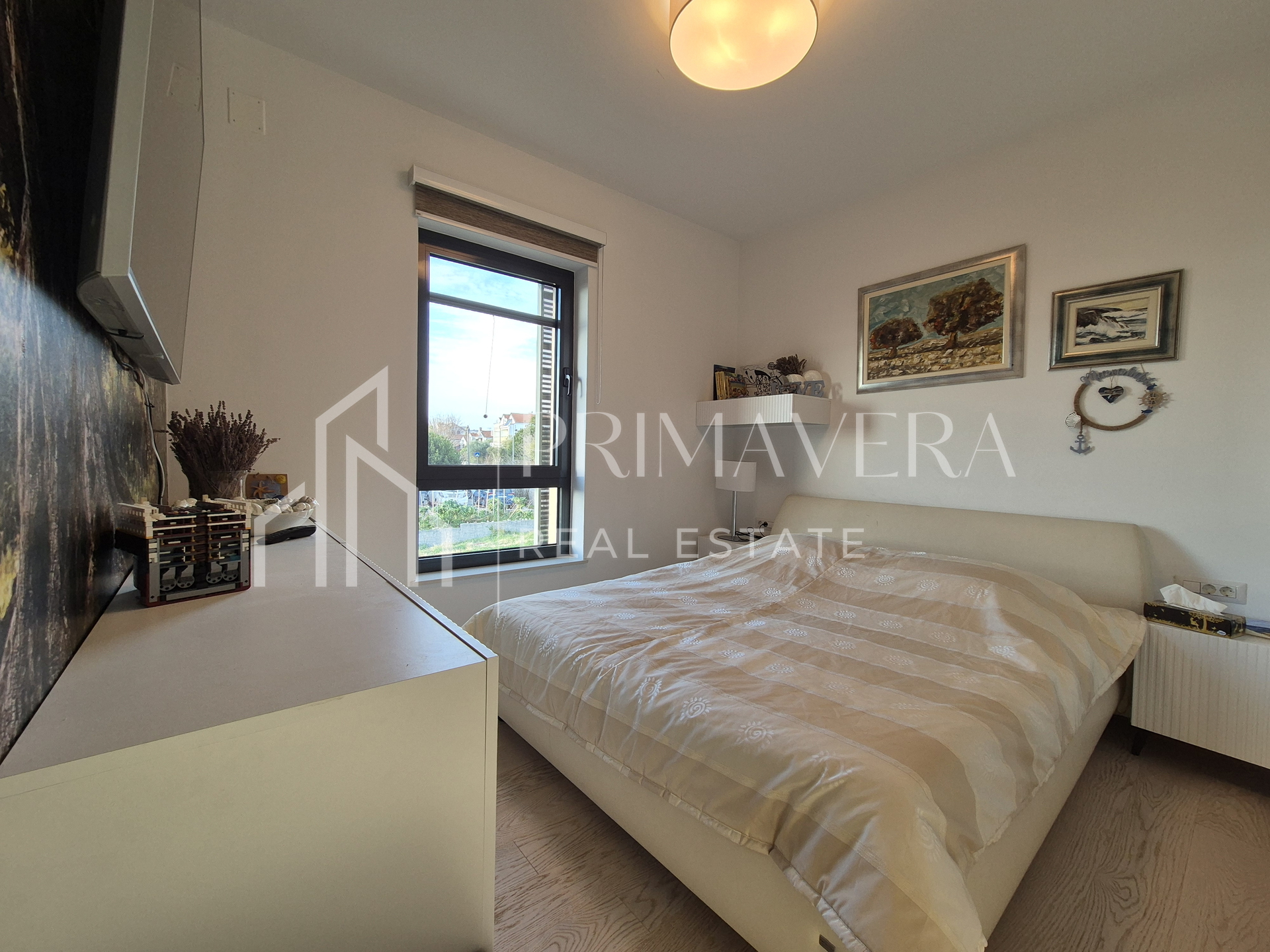 The apartment is fully equipped with quality custom-made furniture. It is air-conditioned with two air conditioners. The exterior joinery is aluminum, with mosquito nets and sliding shutters. The entrance door is burglar-proof. The bathroom has underfloor heating. The floor coverings are mostly parquet, and the bathroom has tiles. The building was built in 2017, and there are a total of 6 apartments in it.