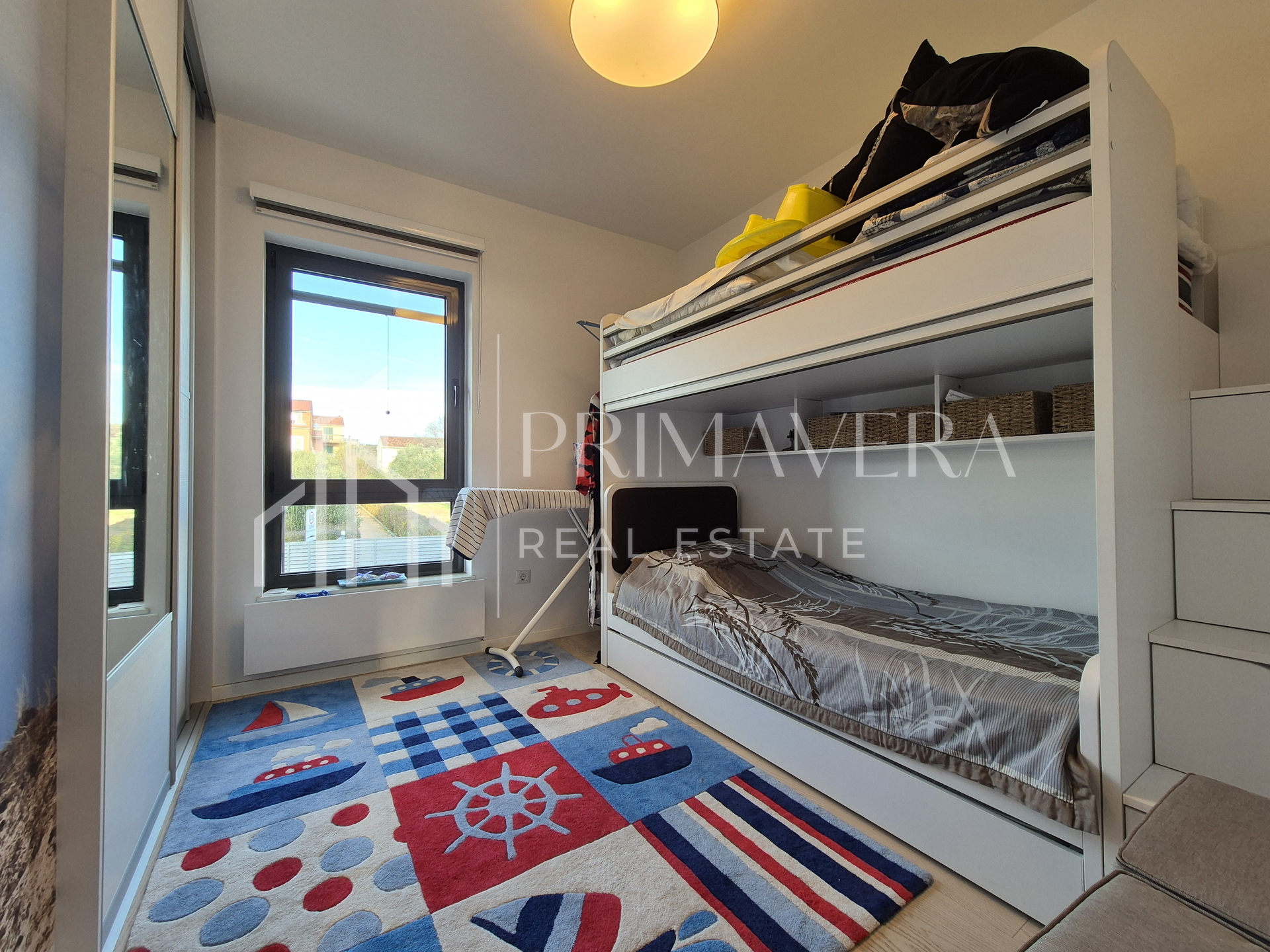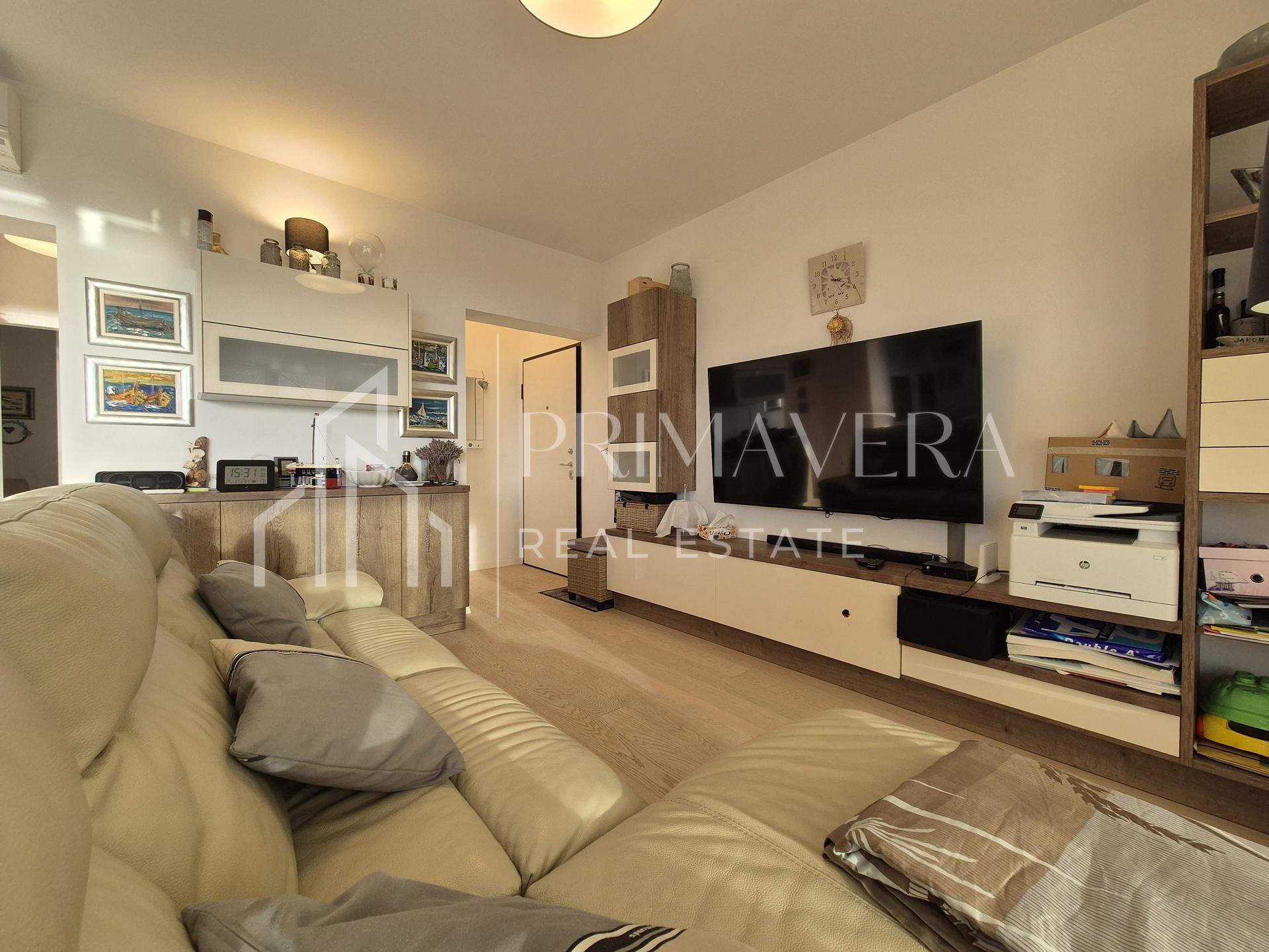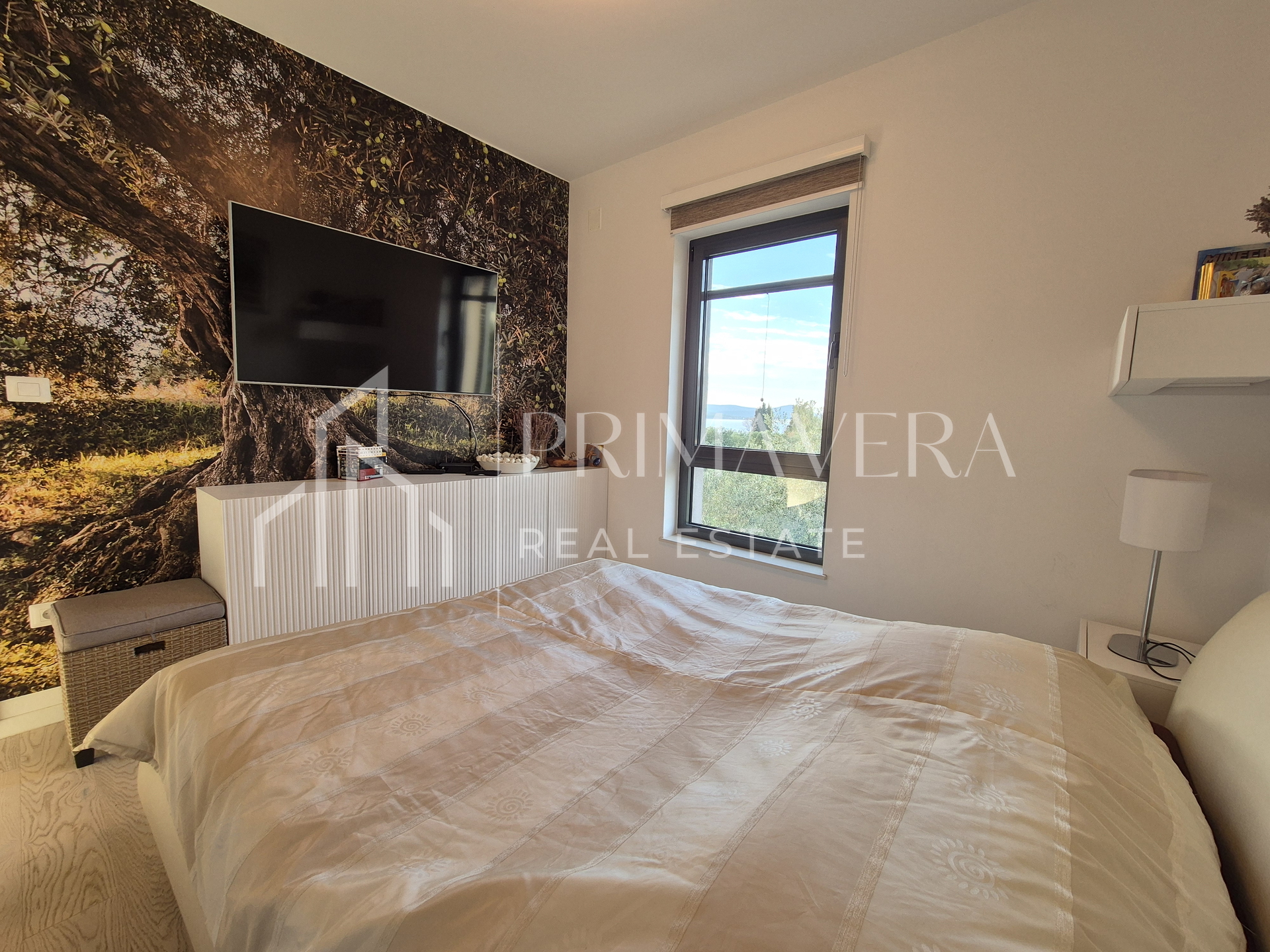 The apartment is fully equipped with quality custom-made furniture. It is air-conditioned with two air conditioners. The exterior joinery is aluminum, with mosquito nets and sliding shutters. The entrance door is burglar-proof. The bathroom has underfloor heating. The floor coverings are mostly parquet, and the bathroom has tiles. The building was built in 2017, and there are a total of 6 apartments in it.