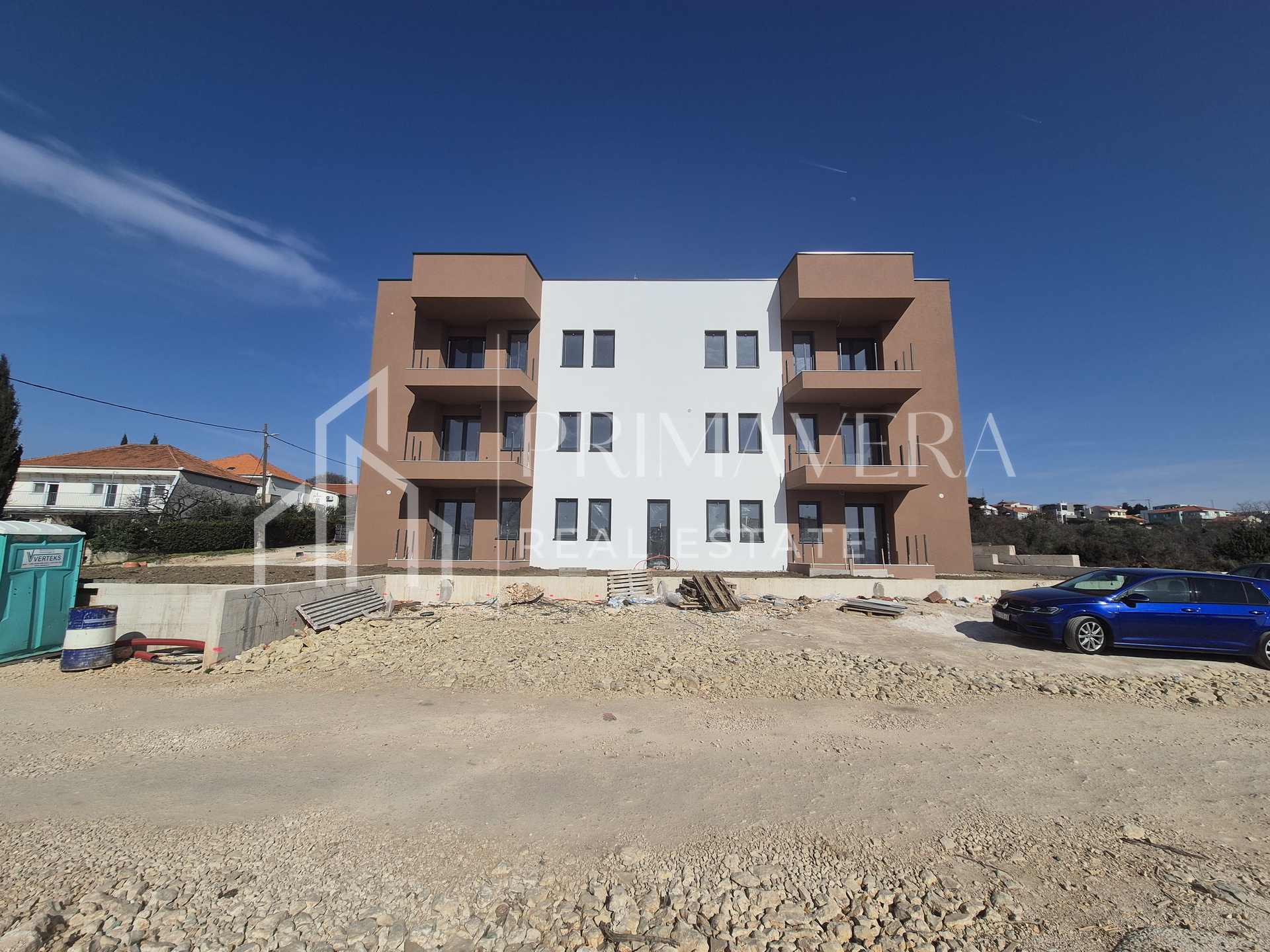 The building contains a garage, ground floor and two floors with a total of 7 residential units. The exterior joinery will be PVC, with triple-layered glass, mosquito nets and electric roller shutters. The entrance door will be burglar-proof and fire-resistant. Underfloor heating will be installed in the bathrooms, while heating and cooling in other rooms is provided with one internal air conditioning unit in each bedroom and in the living room. The floor coverings will be oak parquet and ceramics. The building is covered with 10cm thick thermal insulation, which will result in an A category energy certificate. A reliable and experienced investor ensures the use of high-quality materials, in accordance with the highest construction standards. The project is scheduled for completion and occupancy in the first half of 2025.