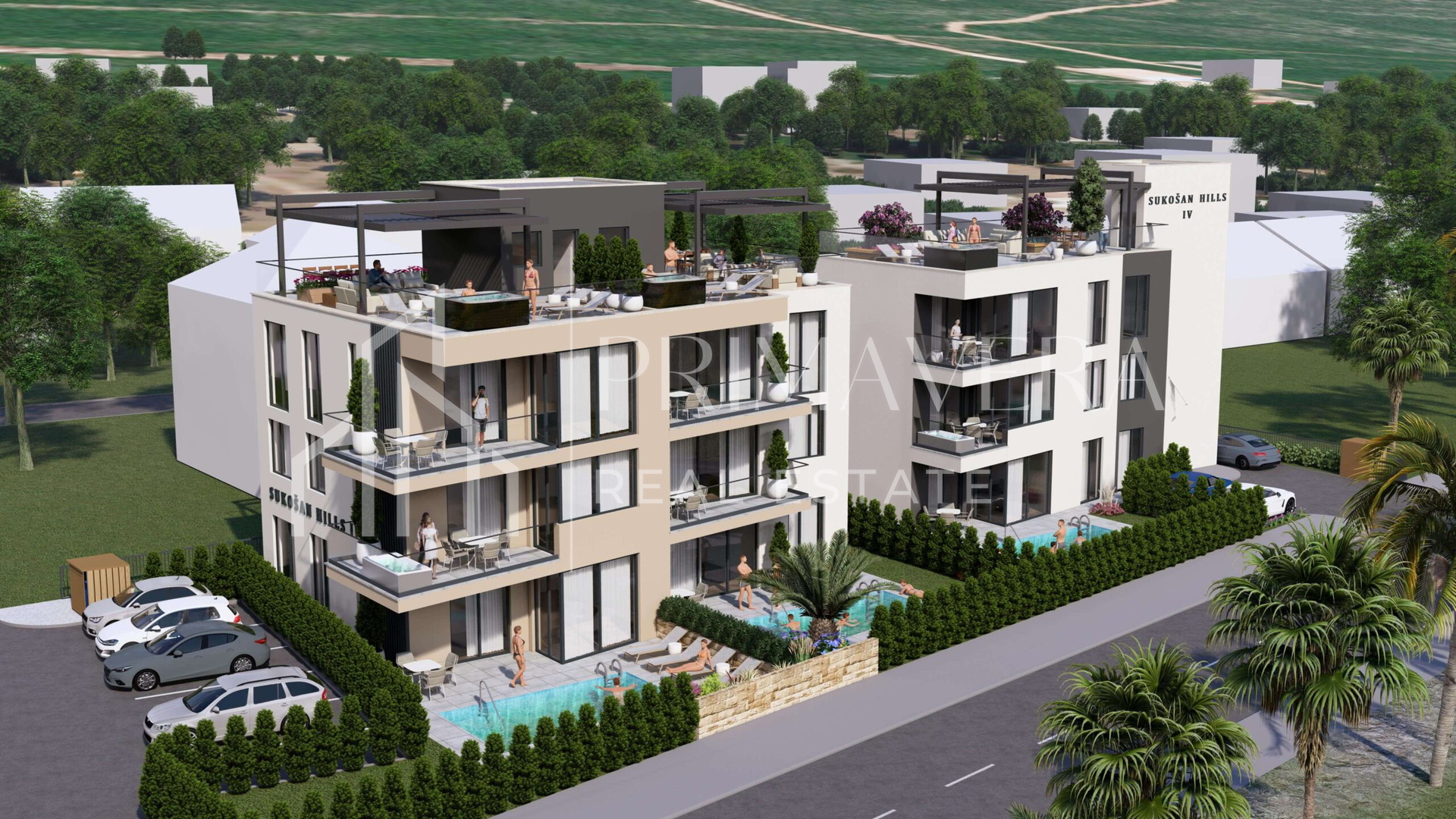 An exclusive project of residential buildings in Sukošan, 1st row to the sea, just a few steps from the sea and a beautiful beach. The project of luxury residential buildings in a spectacular location, first row to the sea, with 3 and 6 residential units is under construction. The apartments on the ground floor have their own swimming pools, and the penthouse apartments have their own roof terrace with a breathtaking view of the sea.