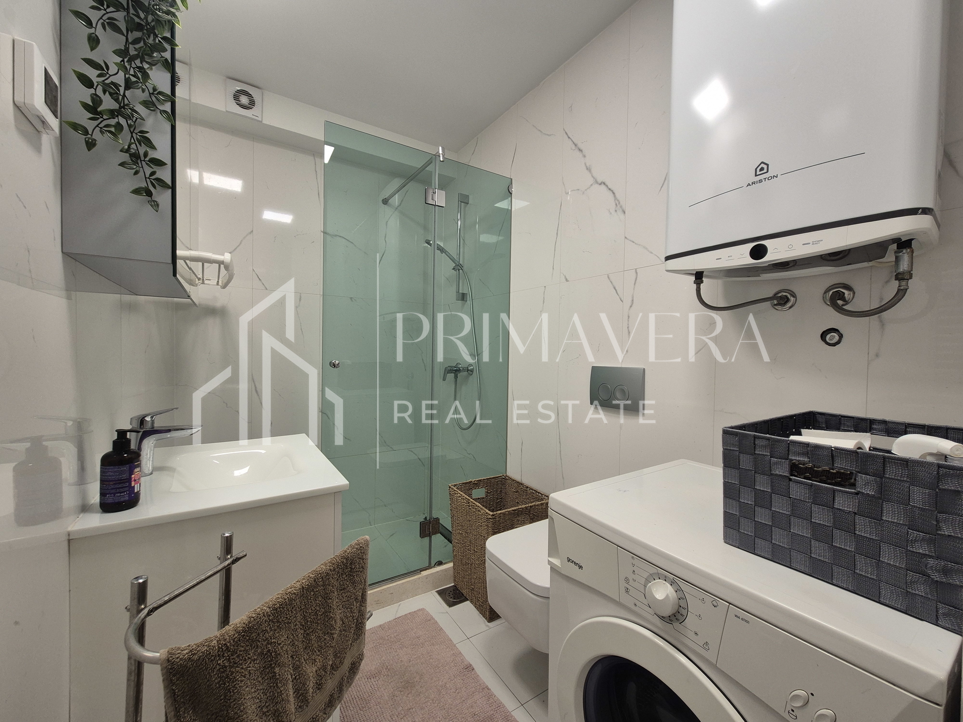 The building was built in 2015, and it contains a total of 5 residential units. The apartment is fully furnished and is being sold as such. It has only been used for personal needs, it has never been rented out. It is in excellent condition. The apartment is equipped with underfloor heating and air conditioning.