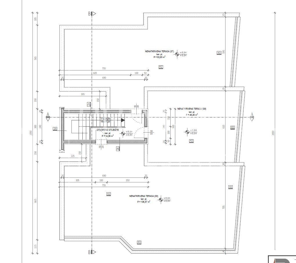 The building contains a basement, ground floor and two floors, with a total of 9 residential units, three on each floor. The apartments on the ground floor have their own gardens, and the apartments on the 2nd floor have their own roof terraces. All apartments have two outdoor parking spaces and a storage room in the basement of the building. The roof terraces will have plumbing installations and preparations for installing a jacuzzi. The exterior joinery will be PVC with triple-layer glass, with mosquito nets and electric roller shutters. The entrance doors will be burglar-proof and fire-proof with a video intercom. Underfloor heating throughout the apartment and air conditioning in all rooms. The apartments will also have a chimney. The floors will be covered with top-quality Italian ceramics. It is possible to choose parquet for the bedrooms. The building will be 10cm thick thermal insulation, which will result in an A category energy certificate. The use of high-quality materials has been ensured, in accordance with the highest construction standards. The project will be completed and move-in is scheduled for the end of 2026.