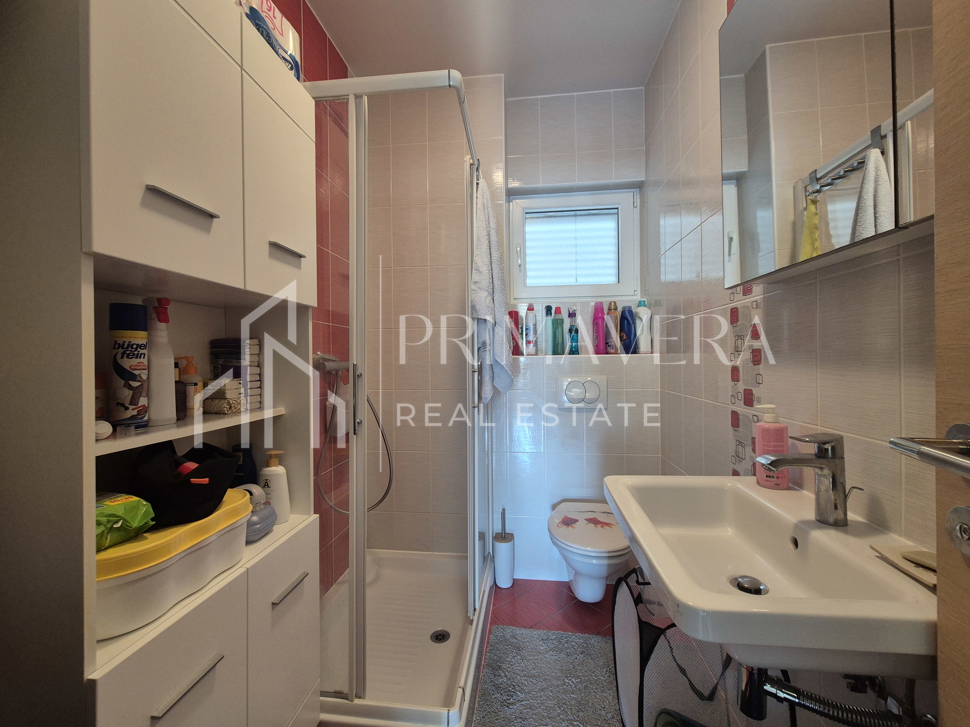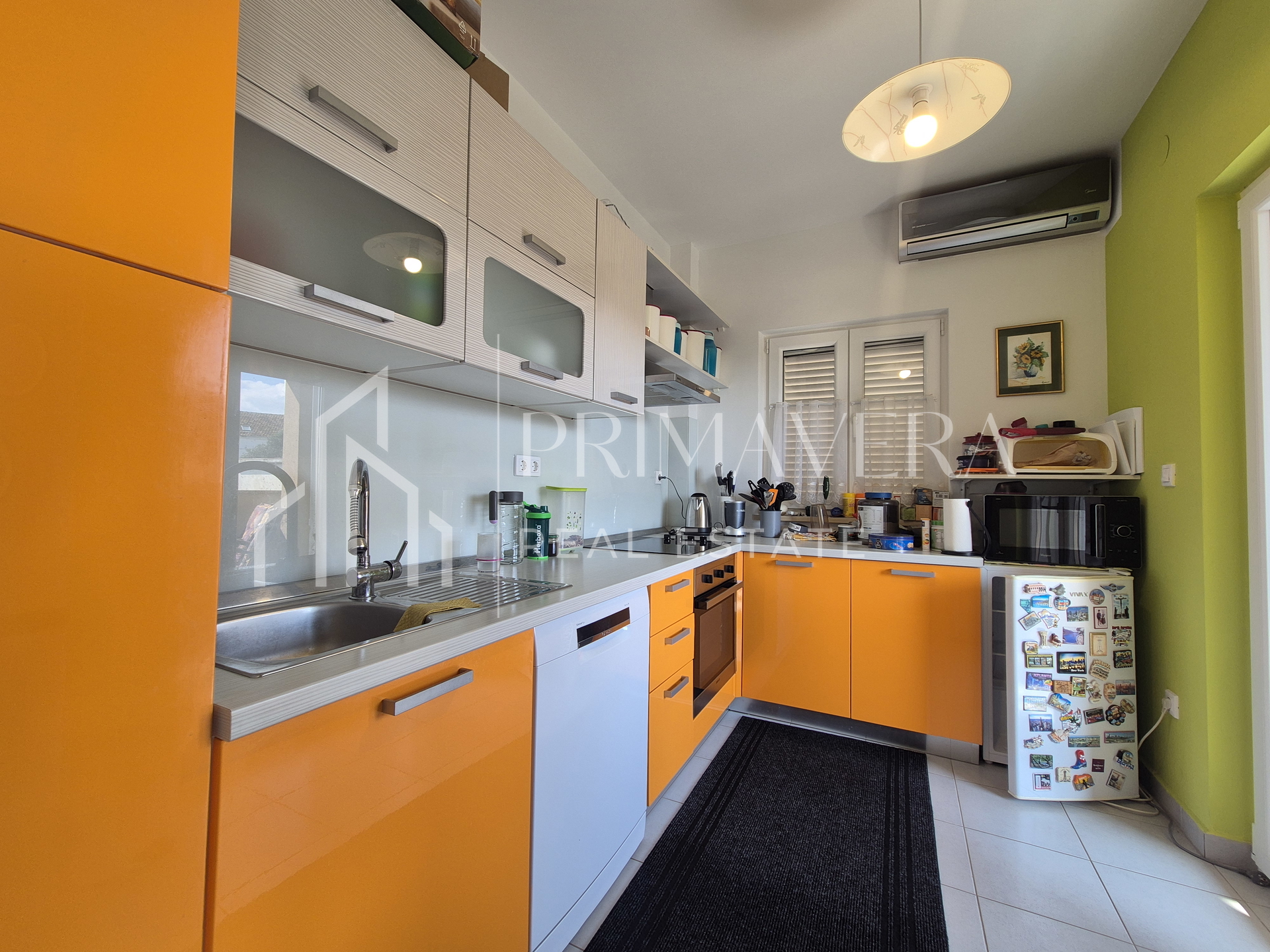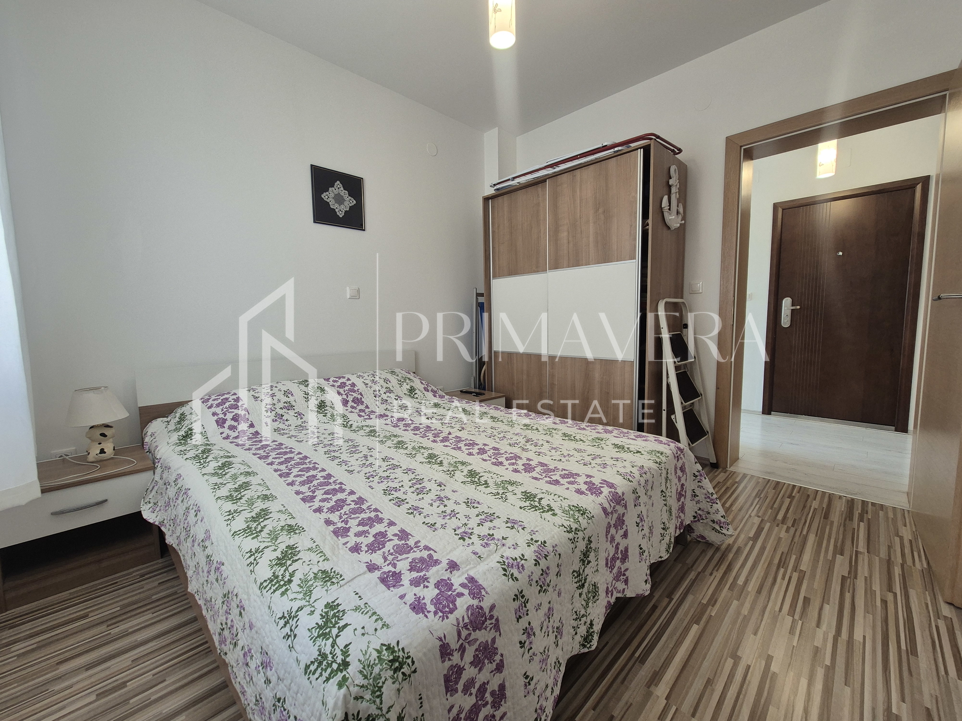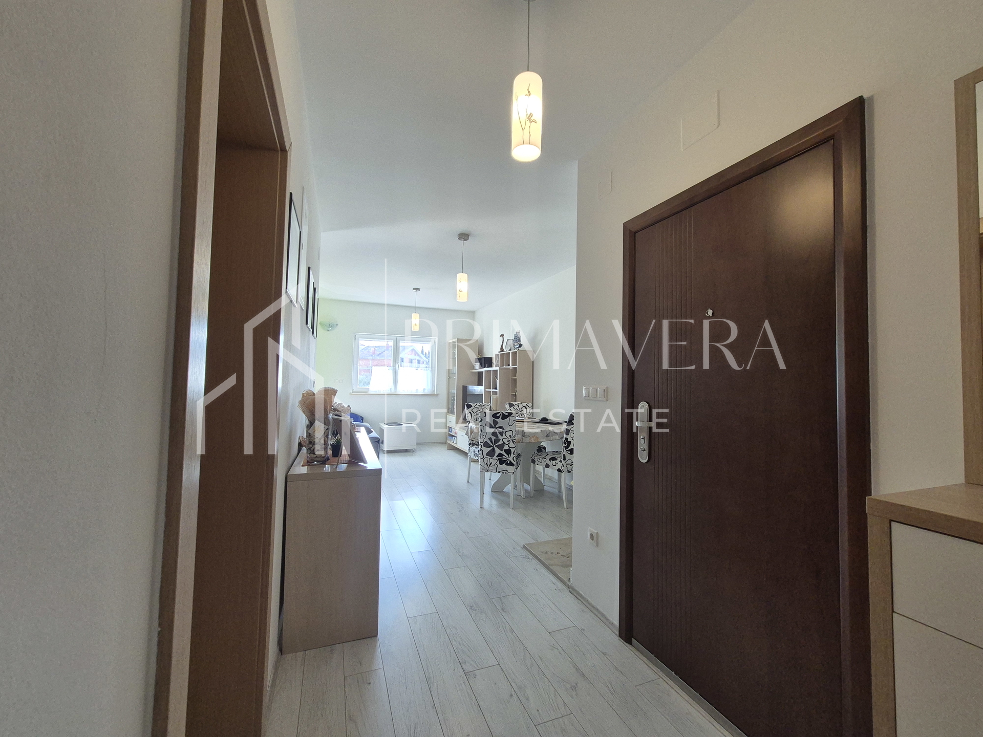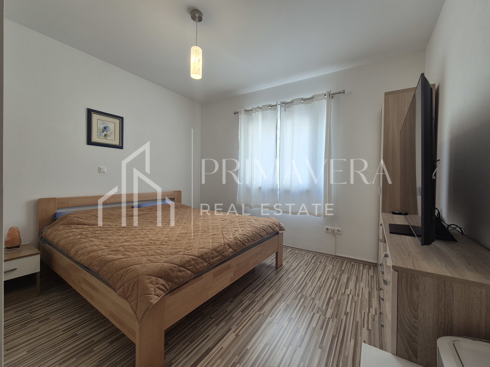 Stan je jako malo korišten tako da je sva oprema i namještaj u izvrsnom stanju i gotovo nov. Stolarija je PVC s komarnicima i aluminijskim griljama. Stan je klimatiziran jednim klima uređajem za grijanje i hlađenje, a za grijanje je ugrađena i peć na drva. Odmah je useljiv. Zgrada je izgrađena 2012. godine. Obložena je termofasadom. Smještenaje u mirnoj ulici, najbliža trgovina je udaljena oko 100 metara, a plaža oko 800 metara.