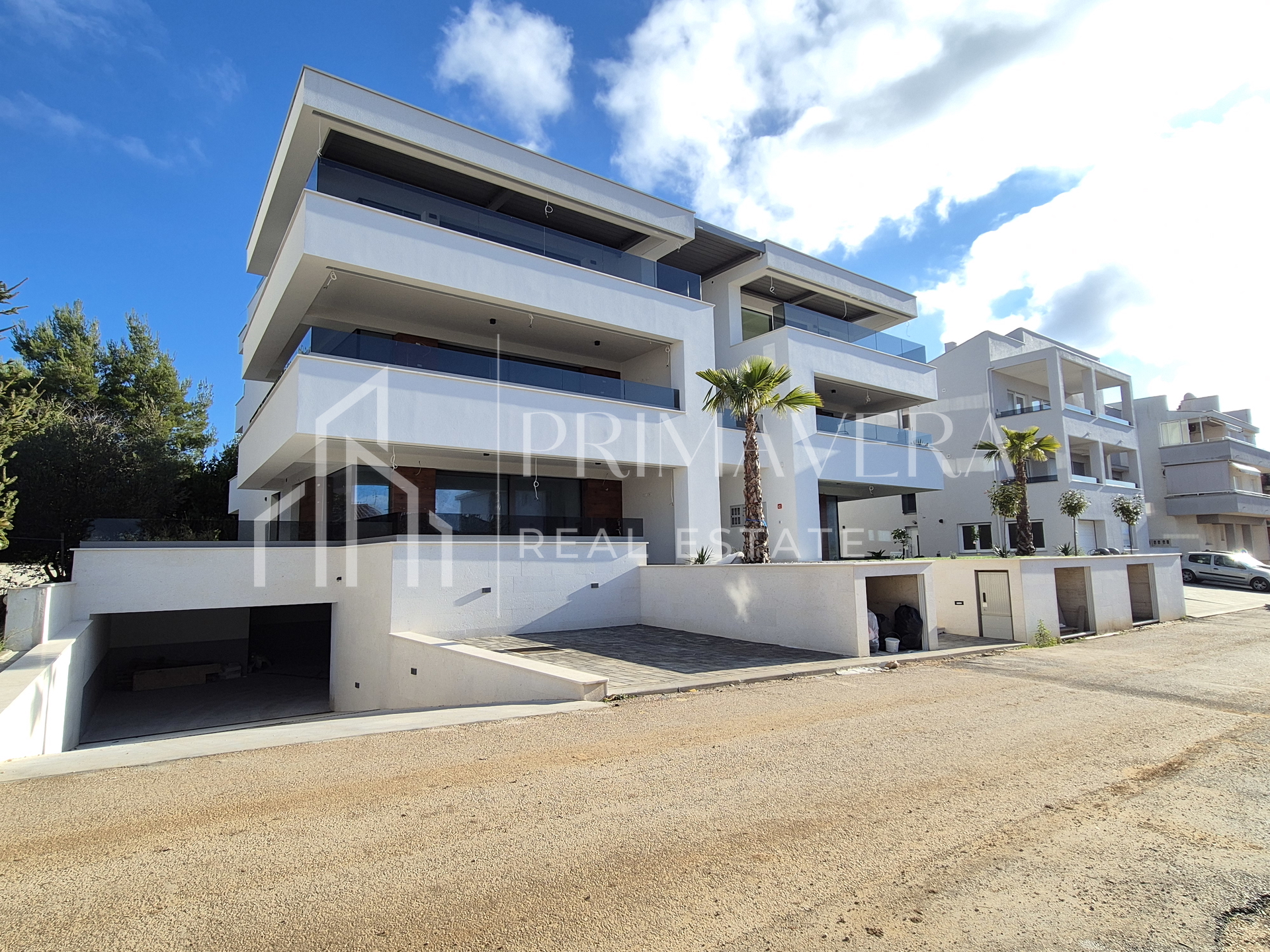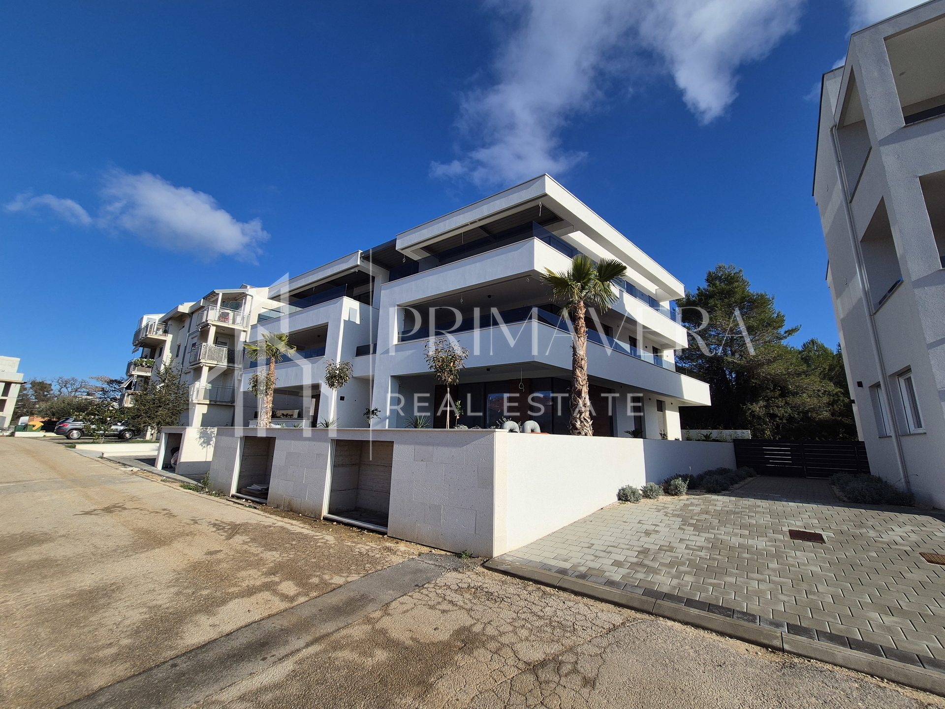 Zgrada sadrži podzemnu garažu, prizemlje i dva kata, sa ukupno šest stambenih jedinica, svaka sa tri spavaće sobe. Sve etaže povezane su liftom. Stambene jedinice raspoređene su od prizemlja do drugog kata, po dvije na svakoj etaži. Stanovima u prizemlju pripadaju vrtovi, a stanovima na drugom katu vlastite krovne terase s prekrasnim pogledom na more i grad Zadar. Stanovi posjeduju po dva parkirna mjesta, pet stanova posjeduje garažna parkirna mjesta, dok jedan stan u prizemlju ima dva vanjska parkirna mjesta. Svi stanovi imaju velike terase južne orijentacije. Pouzdani investitor osigurava korištenje visokokvalitetnih materijala u gradnji, u skladu s najvišim standardima gradnje. Vanjska ALU stolarija s velikim staklenim stijenama, troslojna stakla s komarnicima i električnim podizačima roleta. Ulazna vrata biti će protuprovalna i protupožarna s videoportafonom. Podno grijanje, dizalica topline, te multi split klimatizacijski sustav sa po jednom unutarnjom jedinicom u svakoj spavaćoj sobi te u dnevnom boravku. Podne obloge su hrastov parket i keramika. Zgrada ima termoizolaciju debljine 10cm, što rezultira energetskim certifikatom oznake A+. Završetak projekta i useljenje predviđeno je do ljeta 2026. godine.