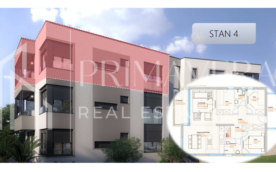Zadar - Belafuža, novogradnja, trosoban stan S4 s garažom, 2. kat