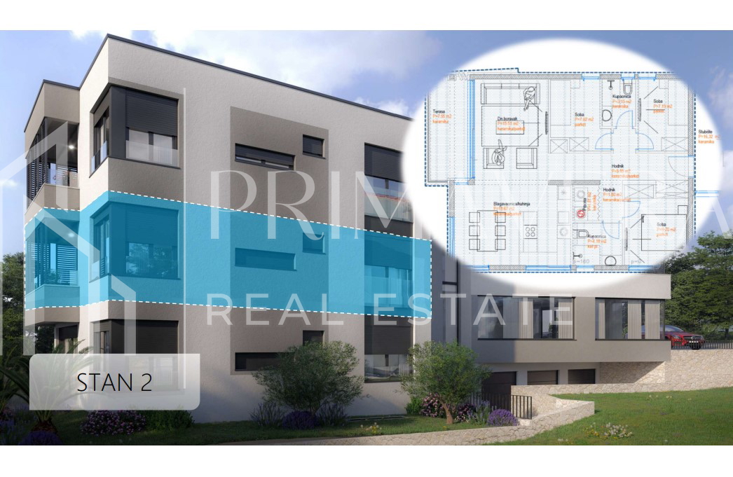 Zadar - Belafuža, novogradnja, trosoban stan S2 s garažom, 1. kat